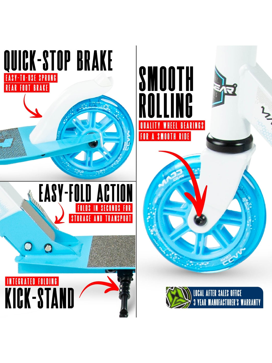 With over 20 years of action sports innovation, Madd Gear is trusted by families worldwide. Every Madd Gear product is backed by NZ based support and a full 3-year manufacturer’s warranty for peace of mind.
