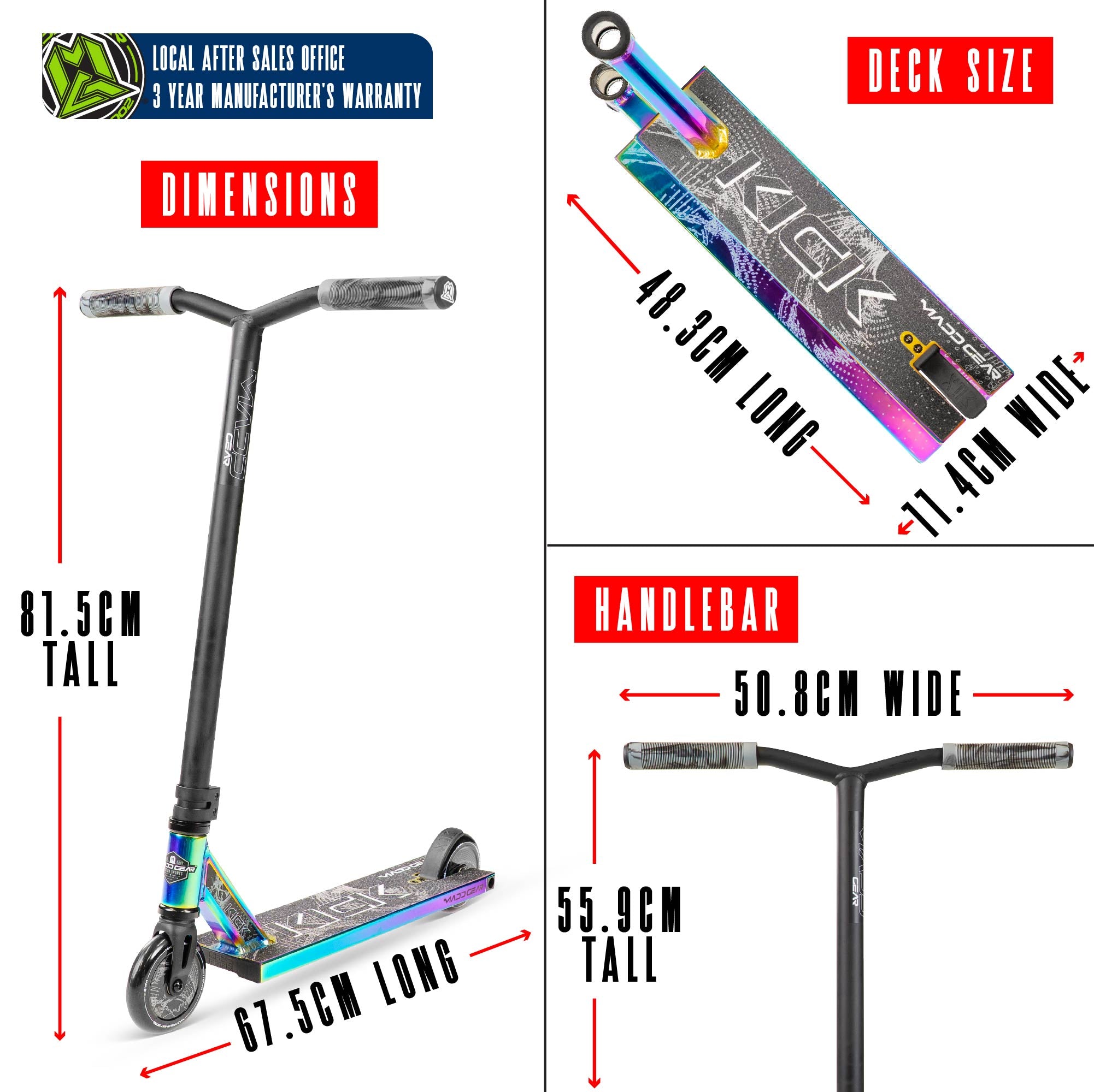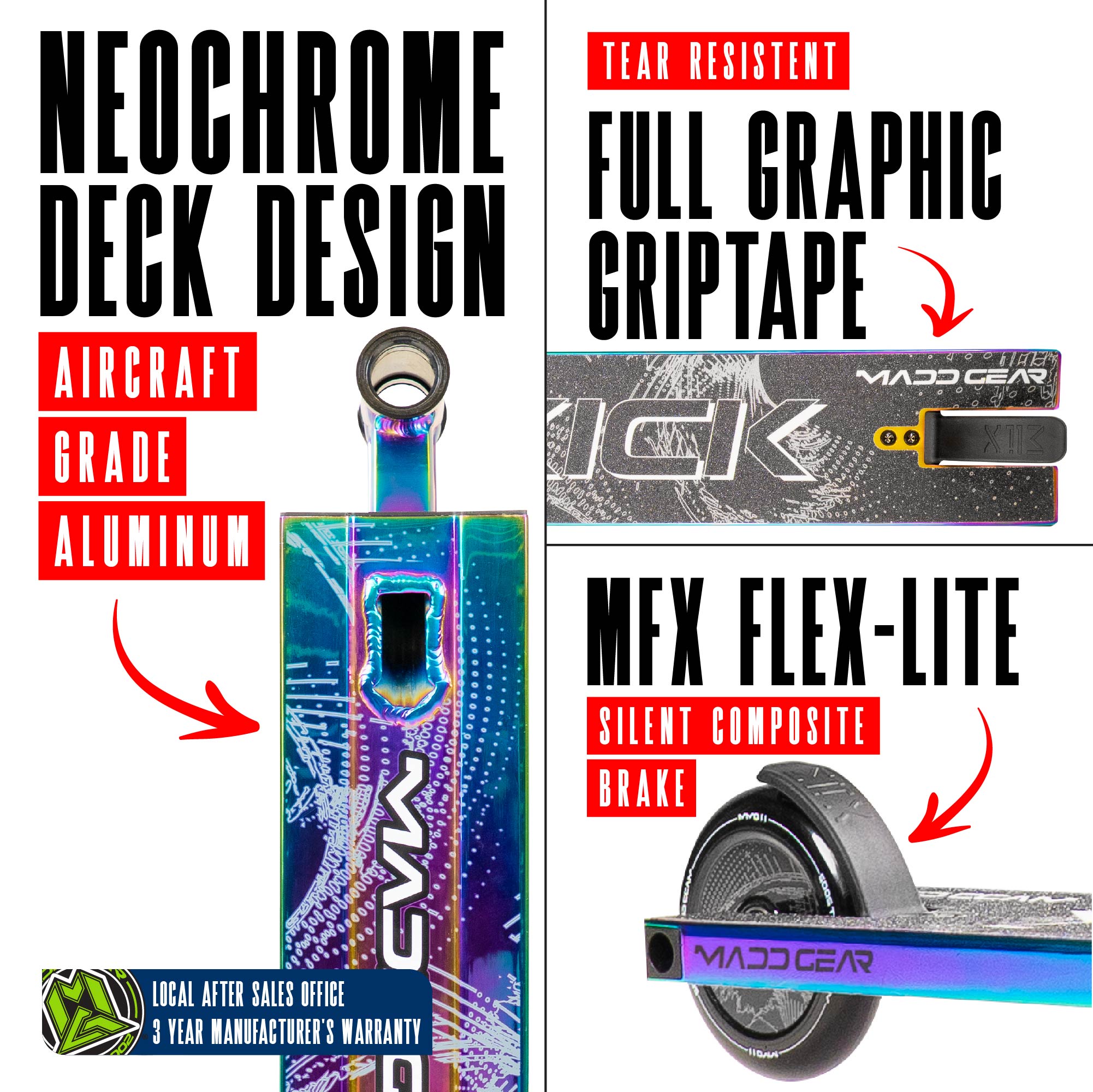 - FINISH: Powder Coated / Full Grip Print / Full Bottom Deck Graphic