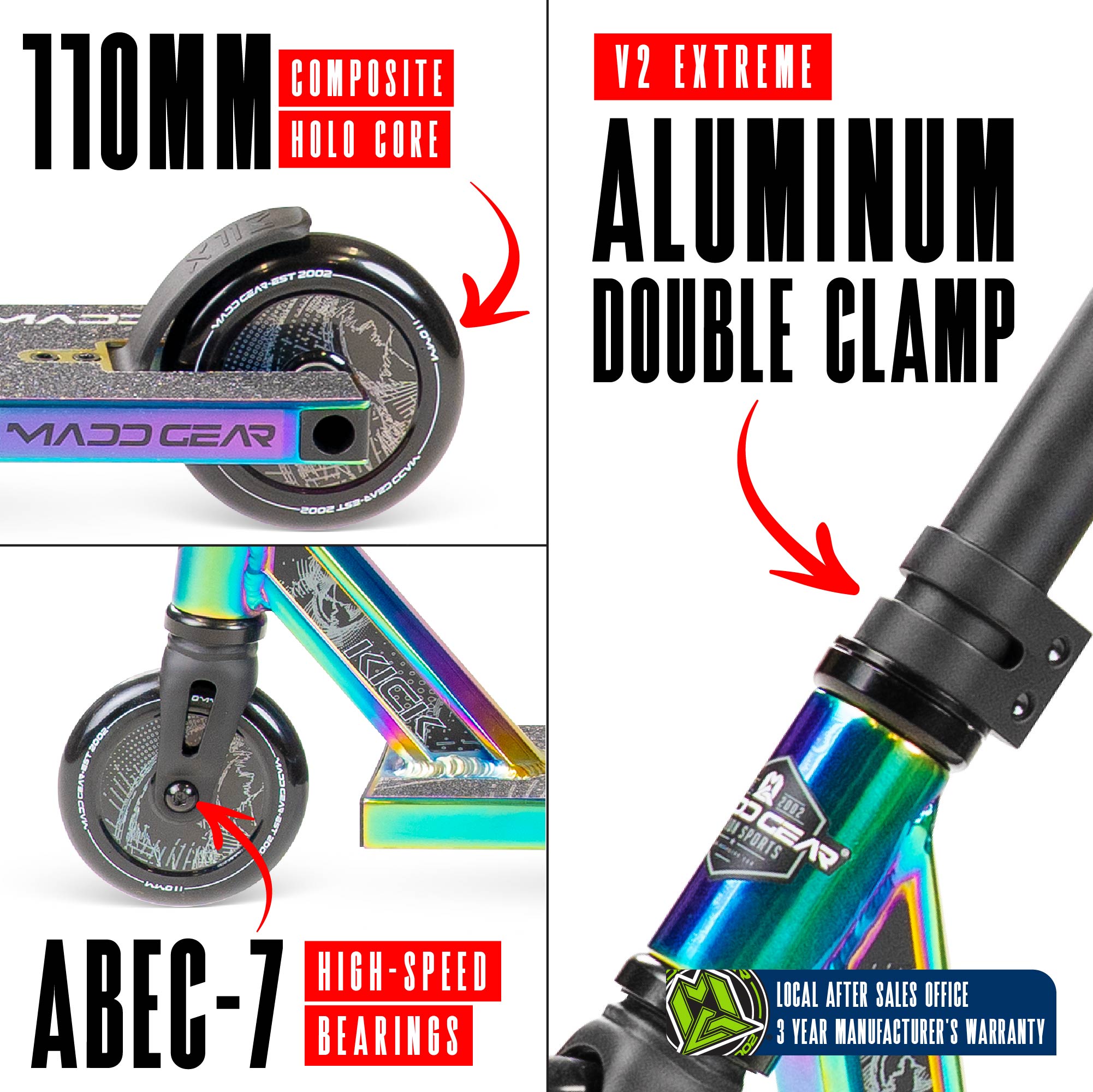 - WHEELS: 100mm 88a Composite Holographic Core