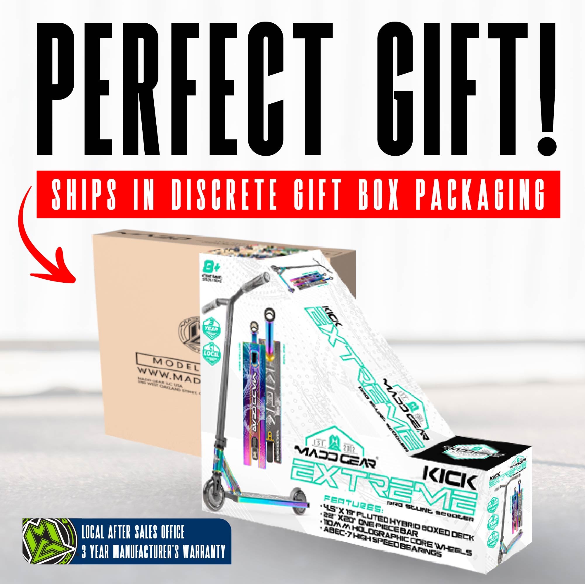Get ready to shred your local skatepark! The Madd Gear Kick Extreme Pro Scooter is designed to be the ultimate ride for kids 8 years and up who are ready to shred at their local skatepark.
