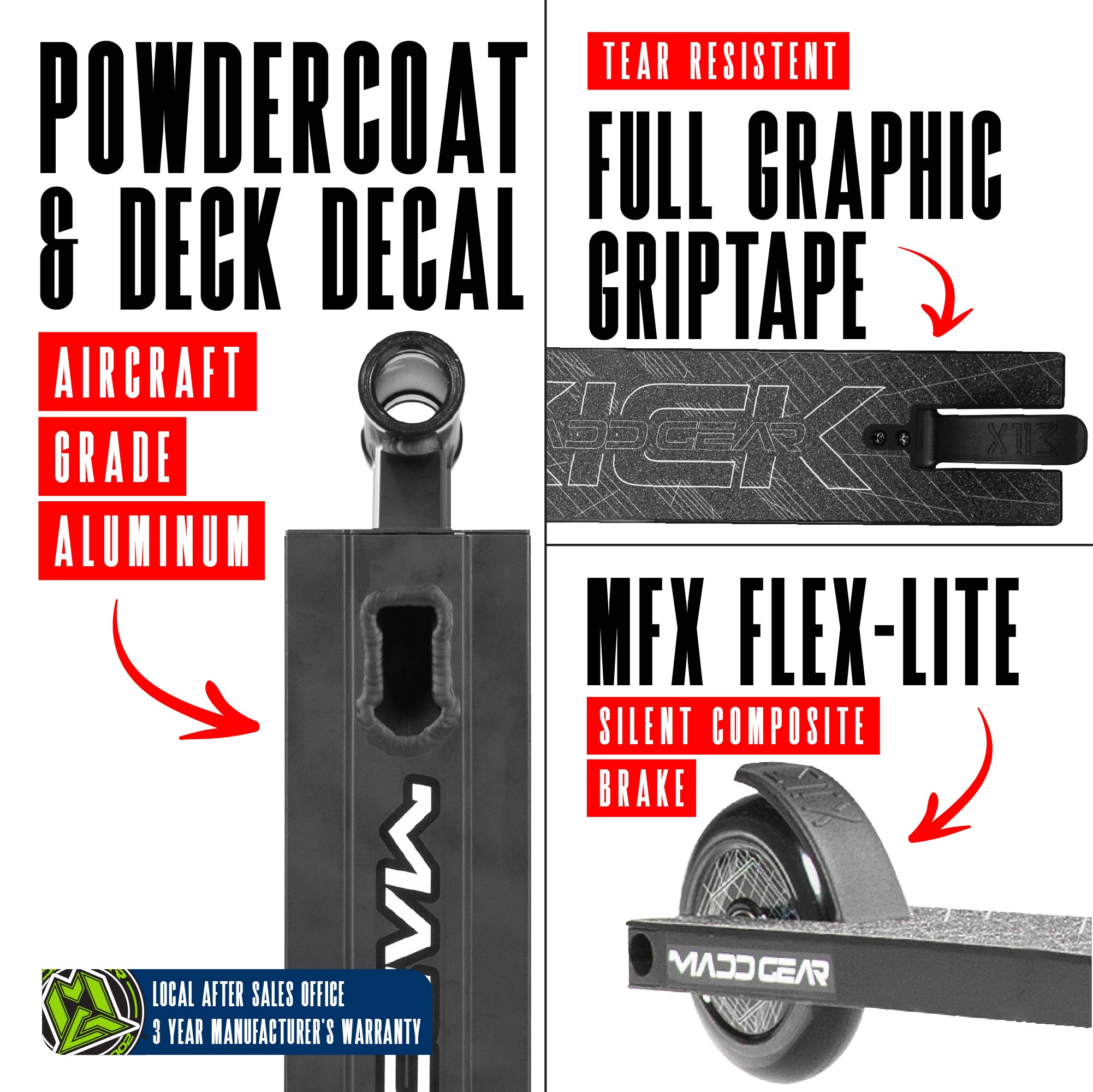Crafted with a rugged yet lightweight aluminium deck and a tough one-piece steel handlebar, it’s designed to handle hard landings and aggressive riding. Supporting up to 100kgs, it's made to keep up with your biggest moves.
